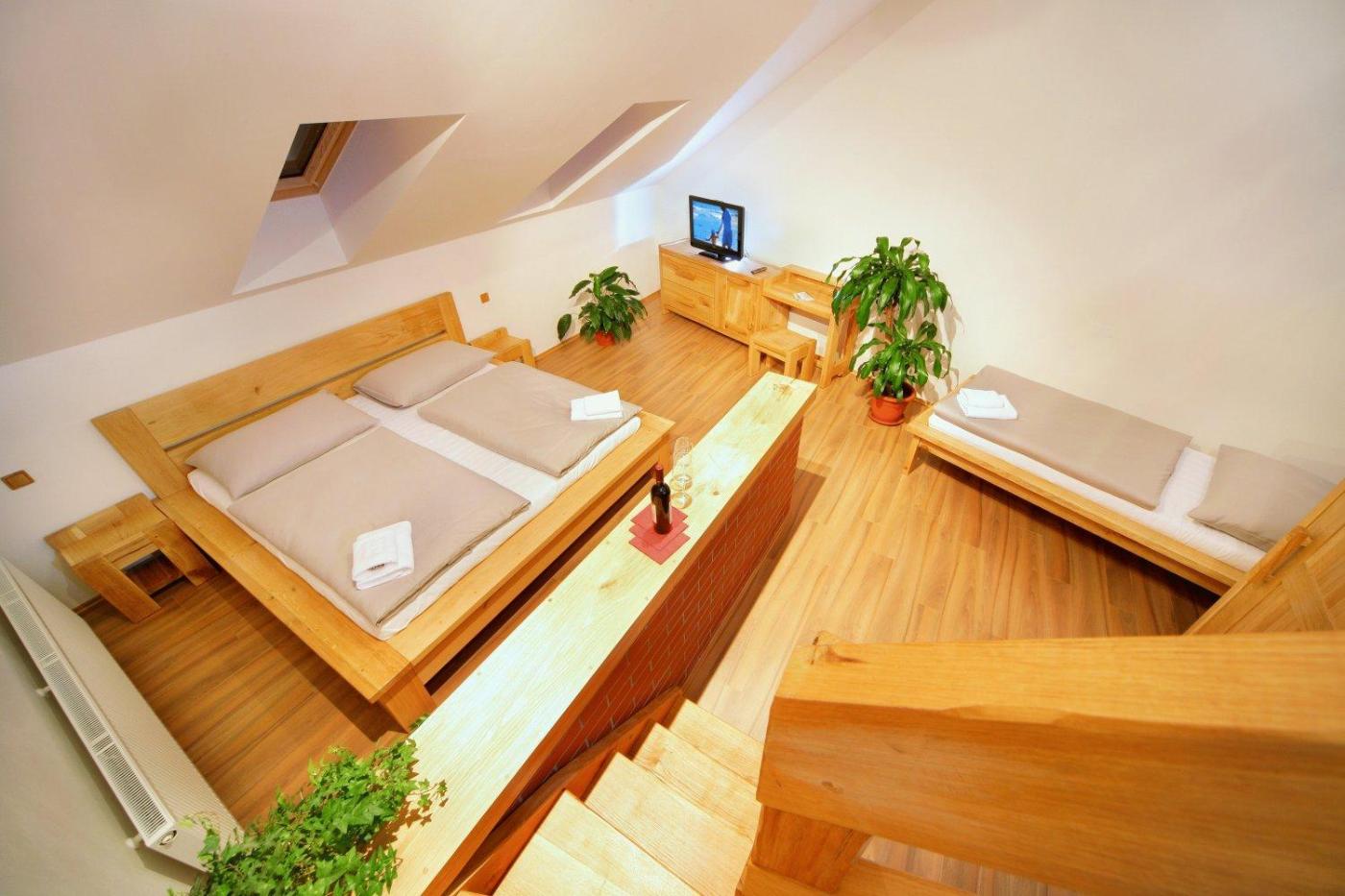 Quadruple Room. This spacious room has a gallery with an additional bed on it.